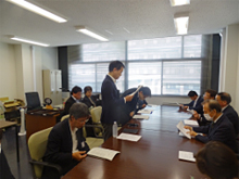 双方の出席者の自己紹介に続いて、大野正喜広島県生協連コープ・アドバイザーより福祉・介護、医療関連、高橋房大専務理事より消費者行政、災害対策・防災、平和行政、食の安全・安心、環境・エネルギー各分野について趣旨説明をおこないました。